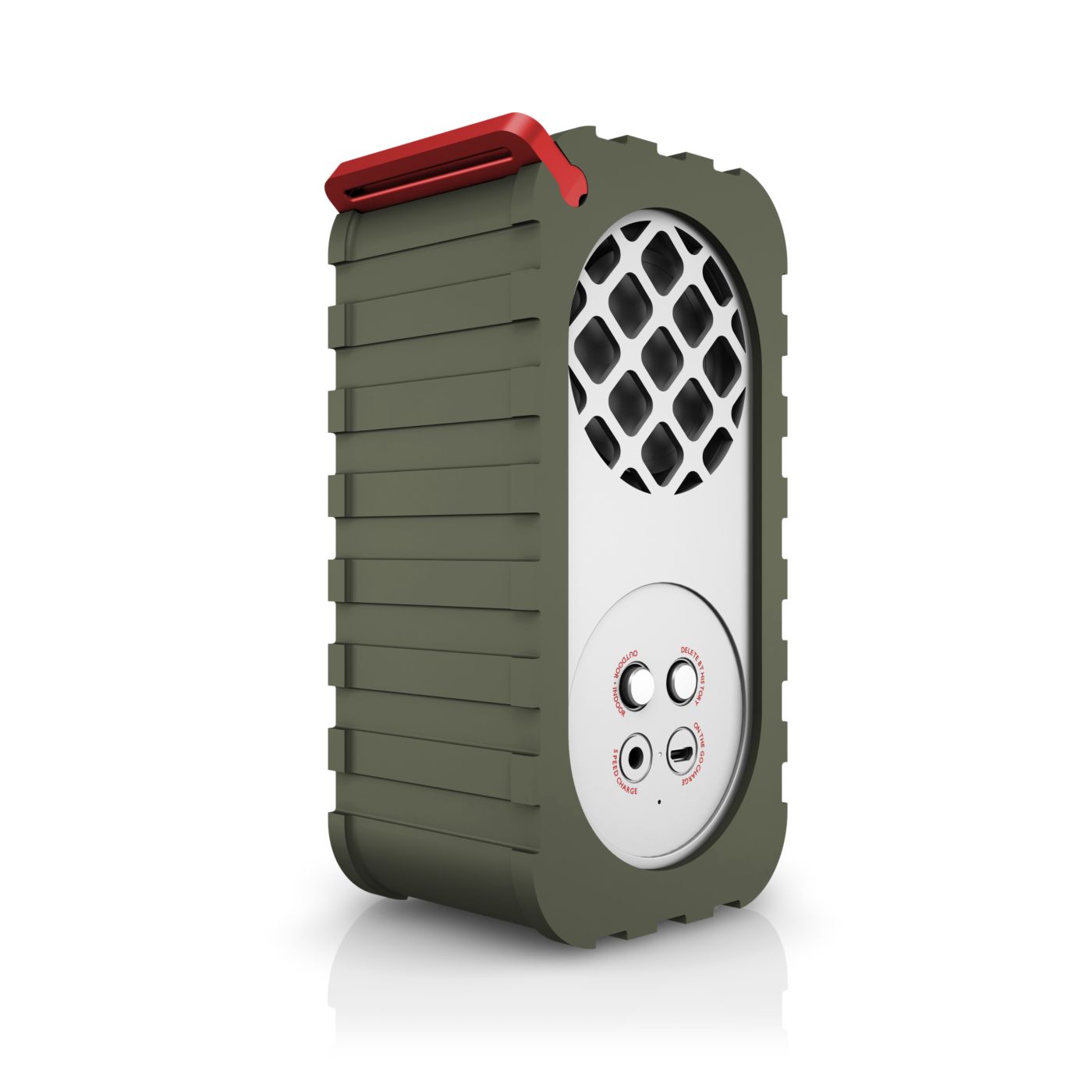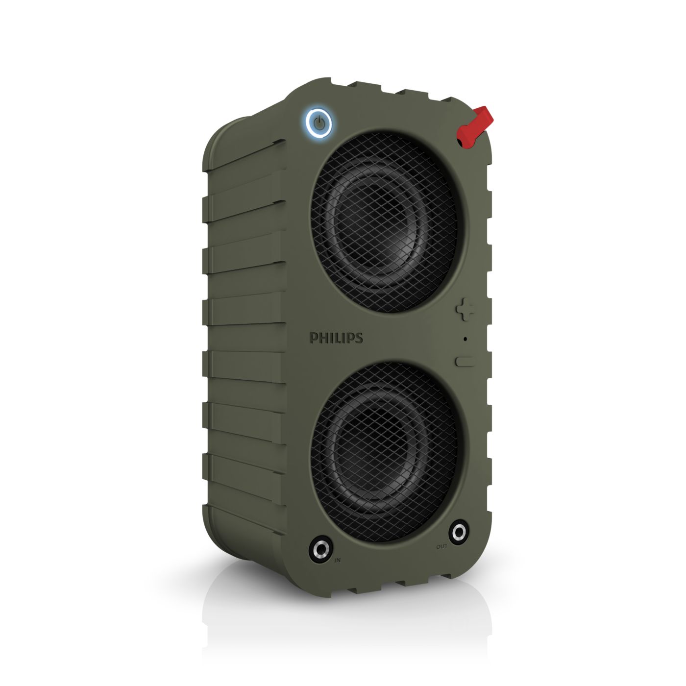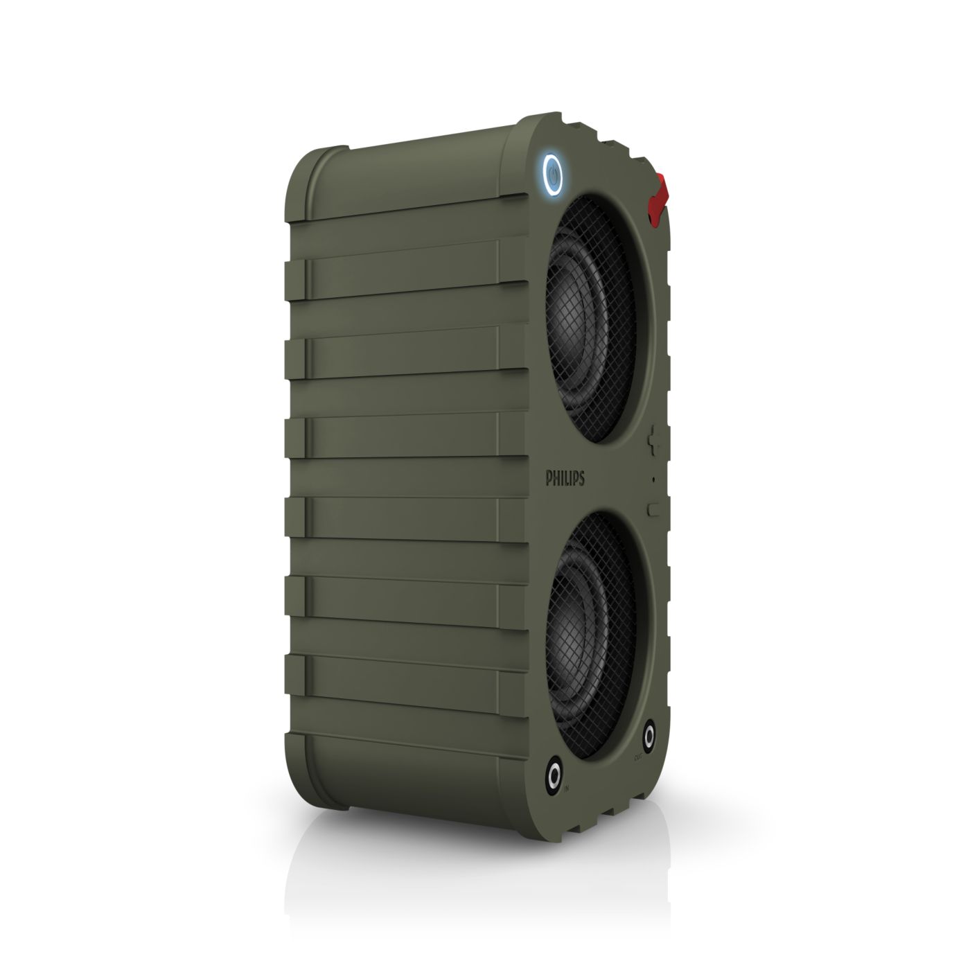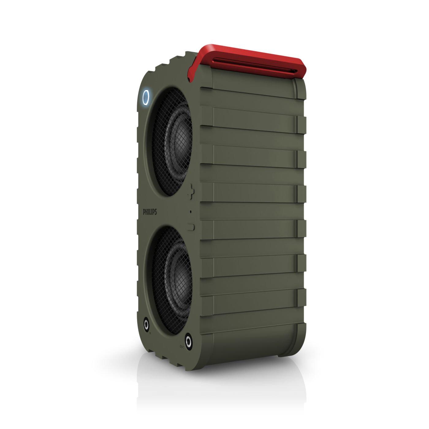 Kaks valitavat heliseadistust õue- ja toarežiimi näol pakuvad lisamugavust ja mitmekülgsust. Kasutage toarežiimi, kui soovite tugevat bassi ja kristallselget heli, ja õuerežiimi, kui vajate maksimaalset helitugevust ja võimsust avatud ruumis.